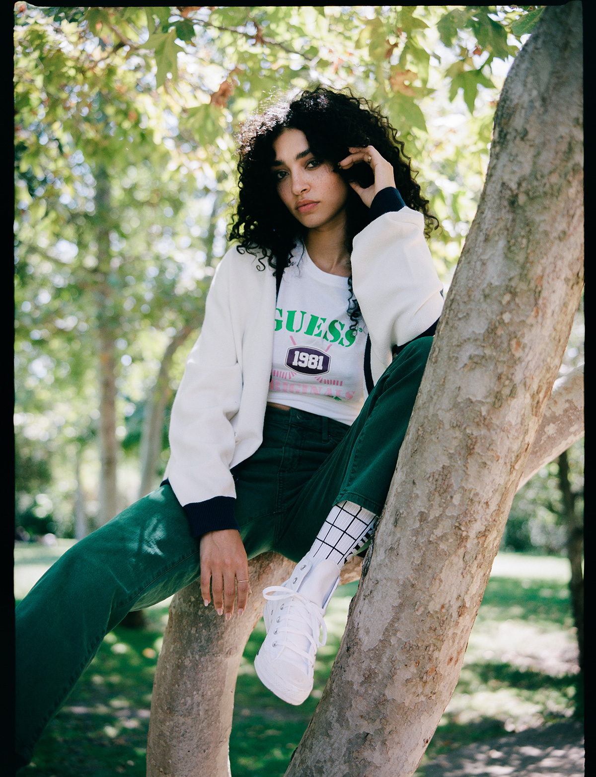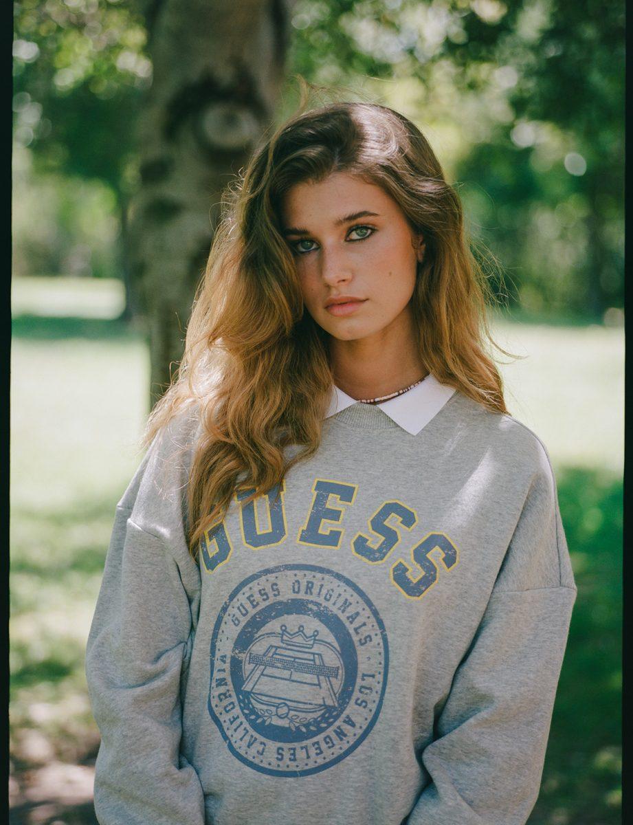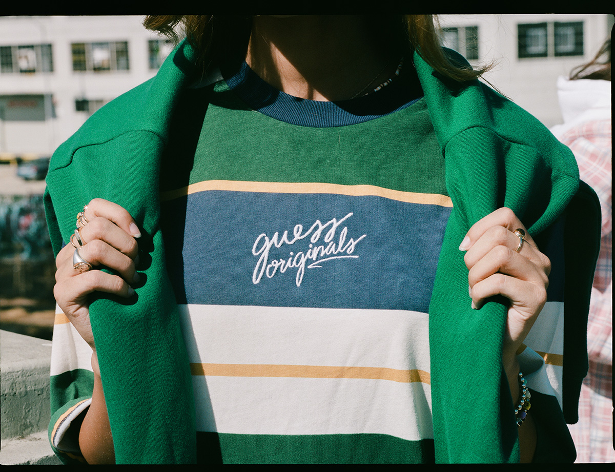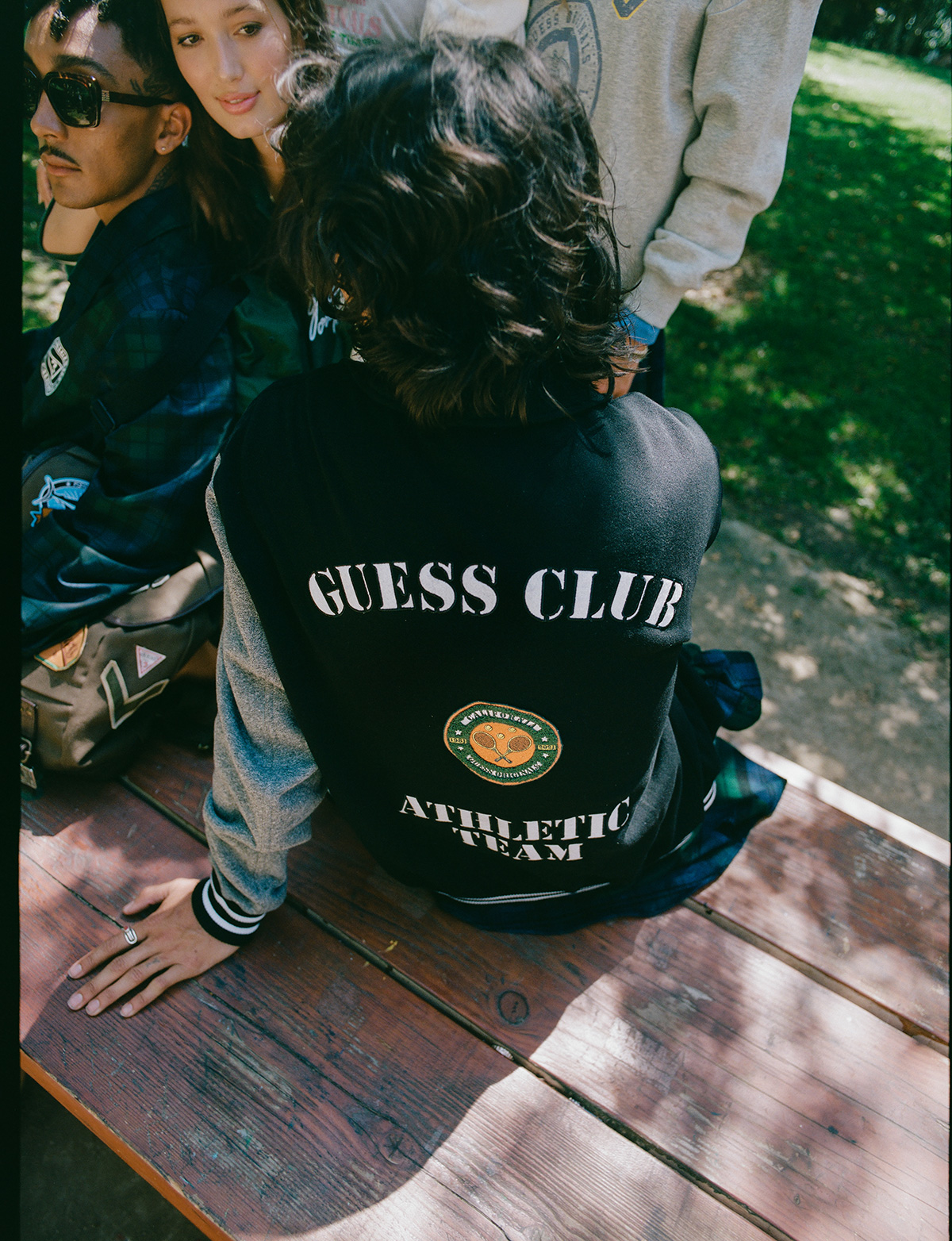 The Fall GUESS Originals Collection takes its design lead from the back-to-school season. The intention of the collection was to create an elevated look that pays homage to classic campus attire. Using authentic vintage GUESS pieces from the ‘90s, GUESS Originals developed a line assortment with an undertone of campus sports silhouettes like cardigans, varsity jackets, and jerseys. The collection also injects classic collegiate graphics, detailing, pattern, and techniques such as regimental stripes, plaids, and chenille/varsity patches to create a modern prep vibe that allows people to express their own style.
