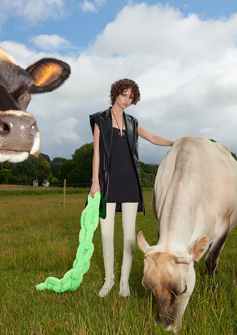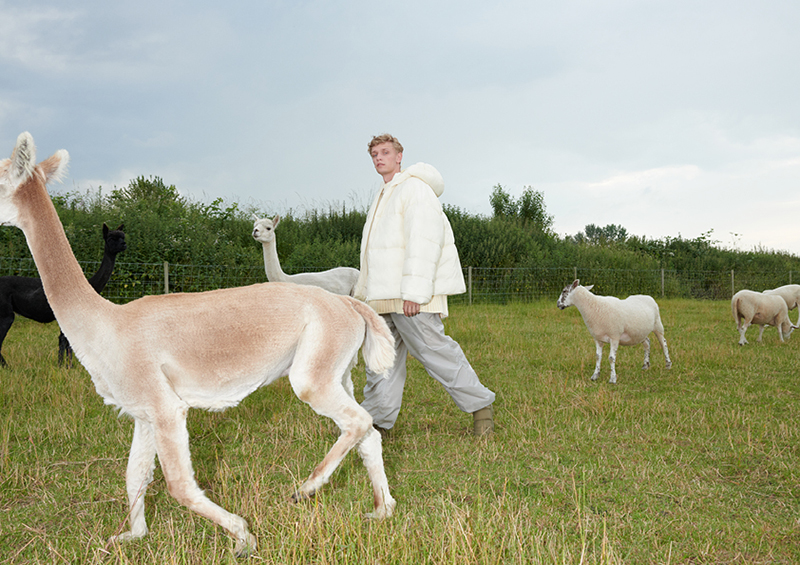The ‘Co-Exist Story’ campaign was photographed by Johnny Dufort and styled by Alexandra Carl at the vegan-run Hillside Animal Sanctuary in Norfolk, one of the UK’s largest animal sanctuaries for rescued farm animals, with the approval of PETA.