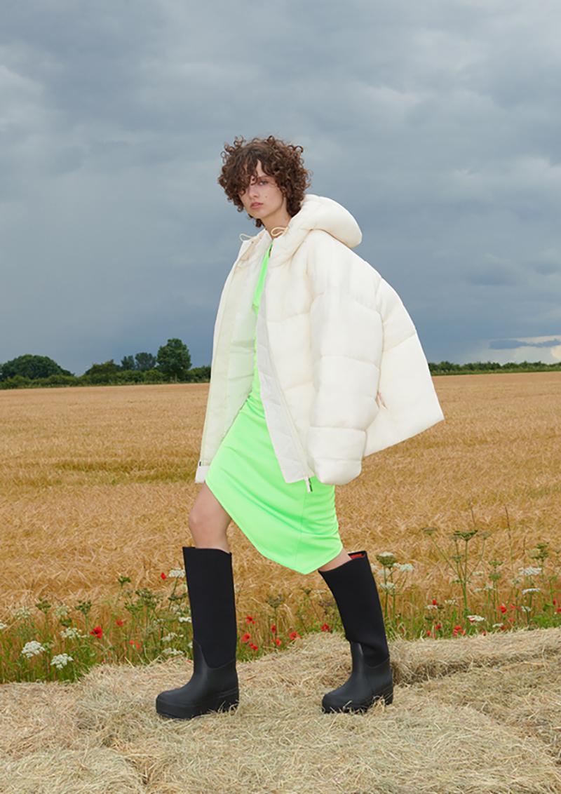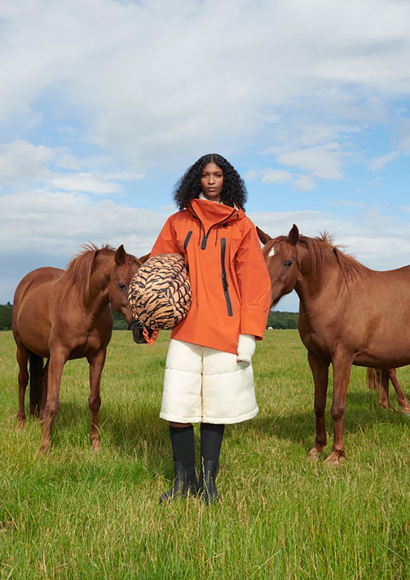 The womenswear and menswear collection are designed for a modern city-dweller who flits between late-night parties and early-morning hikes. The collection combines innovative animal-substitute fabrics and more sustainably sourced materials with a fashion-forward mentality. Extreme volumes, ’90s-inflected partywear and functional outerwear all feature, alongside pioneering fabrications such as FLWRDWN™, an alternative to animal down made using wildflowers, and VEGEA™, a plant-based substitute for oil-based and animal-derived leathers.