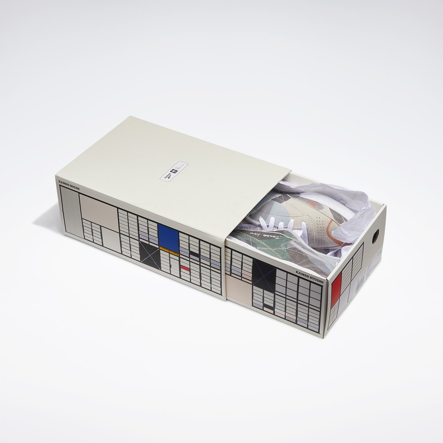 Reebok x Eames – Club C ‘Composition’ is based on Ray’ Composition painting of 1939—the year before she met Charles at Cranbrook. Exhibiting the eye for abstraction that Ray honed under the tutelage of German émigré master Hans Hoffman, Composition’s subtle natural tones envelop an upper that floats atop a crisp white midsole. Ray’s handwritten signature enhances her personal connection to this collectible sneaker.