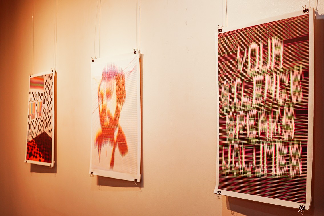 MANILA, PHILIPPINES – Melvin Galapon’s pieces remind us of olden boxy televisions — from the color palette down to the glitches and visual noise onscreen. With the slight tweaks on what looks like straight lines, Melvin can create a poster that seem plain at first glance but unveil text when seen from a lateral view.