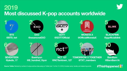 SEOUL, SOUTH KOREA – 2019 was a huge year for #KpopTwitter, as Kpop remains an undisputable force that continues to make waves across the world. With an amazing record of 6.1 billion Tweets in 2019, which was 15% higher than in 2018, Twitter shows that it is the best place to find out what’s happening with all things Kpop, and to join in the conversations with like-minded Kpop fans around the world!