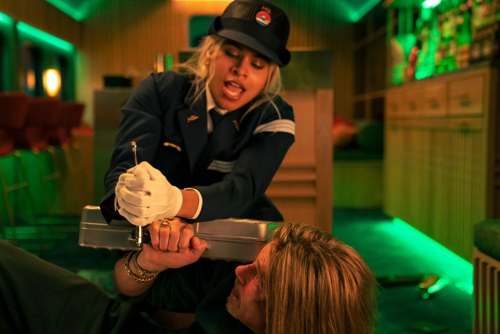 Pitt has always been comfortable in his own skin and often embraced roles where his good looks are dirtied up for the sake of the story and that’s definitely the case here. As an assassin going through an existential crisis and given a decidedly un-macho codename in “Ladybug,” Pitt isn’t afraid to be the butt of jokes, get beaten up, or even bit by a poisonous snake.