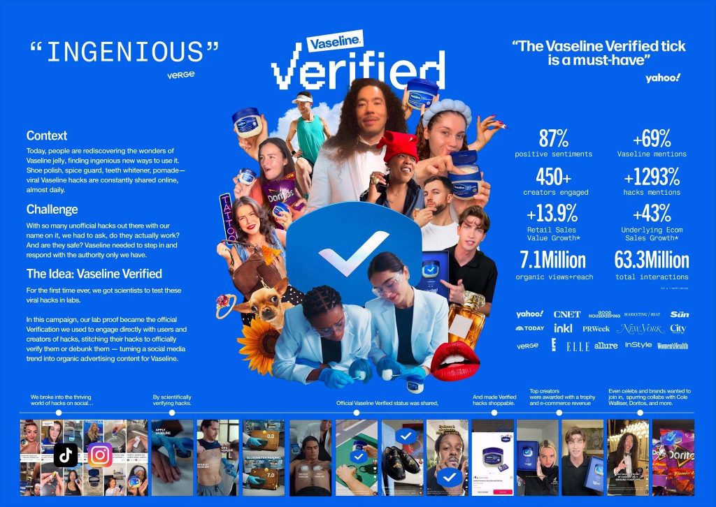 Maggie: We sparked a real conversation between Vaseline scientists and a creator who had posted about using Vaseline on his dog. It wasn’t forced. It was already happening. We just leaned into it. Ads shouldn’t interrupt; they should amplify. Seeing creators proudly showing the Verified sticker is the most desirable goal for any brand.
