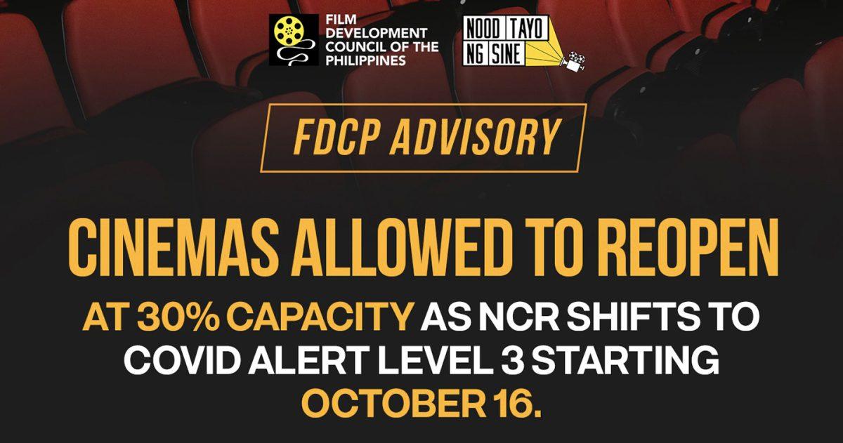 The FDCP is truly grateful for the consideration of reopening the cinemas, as though at a limited capacity, this will immensely help not just the livelihood of cinema workers but also the Philippine Film Industry.