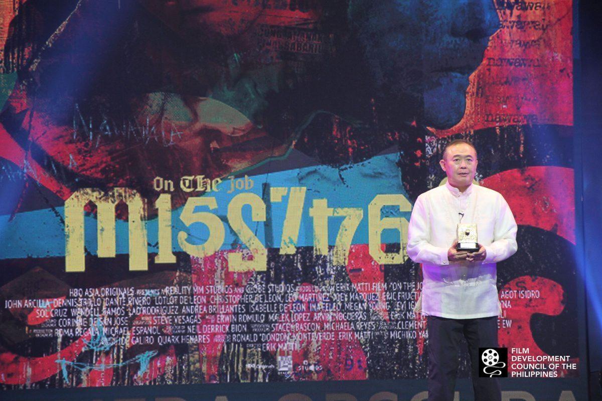 The highest honor granted by the FDCP for exceptional films or individuals that blazed new trails in various fields of cinema is the Camera Obscura Excellence Award which was bestowed on John Arcilla. His film “On the Job: The Missing 8 (OTJ)” was also awarded the Camera Obscura which was received by producer Dondon Monteverde who also gave a few words about their OTJ journey and shared the recognition and congratulations to their director, Erik Matti and to their world-class actors.