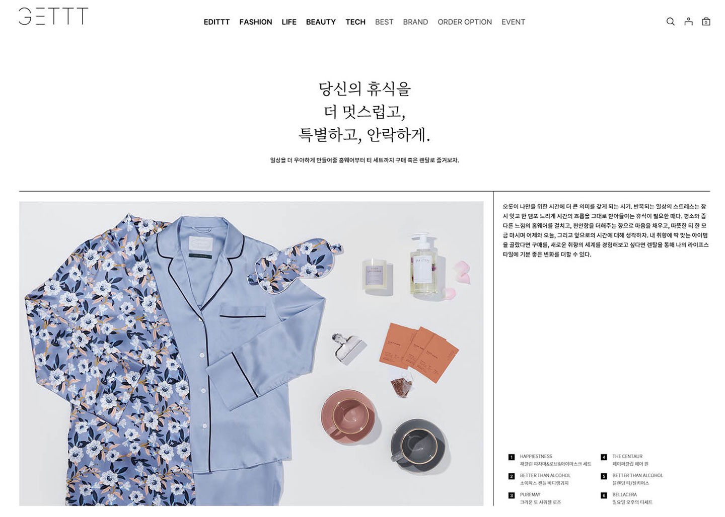 GETTT, an acronym for GET THE TASTE, offers a new type of e-commerce service that lets consumers experience various products and find their own taste through rental service. Around 70 lifestyle brands ranging from fashion to interior, beauty and tech has opened stores in GETTT.
