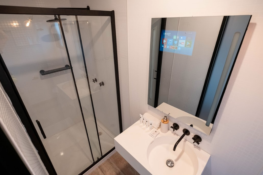 The luxury one bedroom suite is jam-packed with the latest technology including 5G cloud gaming, buffer-free streaming, a range of immersive AR apps, and advanced smart home features – including a smart mirror!