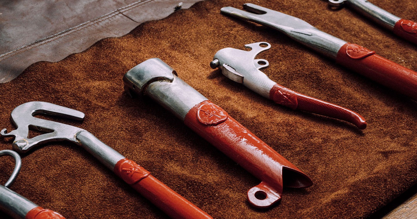of different bottle openers. Each opener originates from a different part of a drowned bike. Finished off with V2C’s trademark red seal, the result is a unique handcrafted set of tools for bartenders and gin lovers.