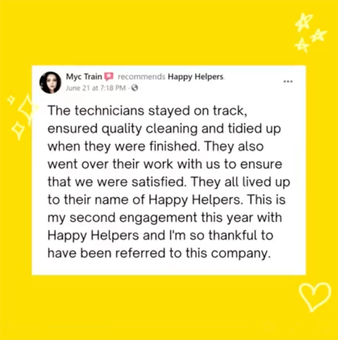 The natural result of having happy workers is usually having happy customers. As British author and inspirational speaker Simon Sinek says: “Happy employees ensure happy customers. And happy customers ensure happy shareholders – in that order.” In its website, Happy Helpers have over one hundred testimonials from very satisfied customers.