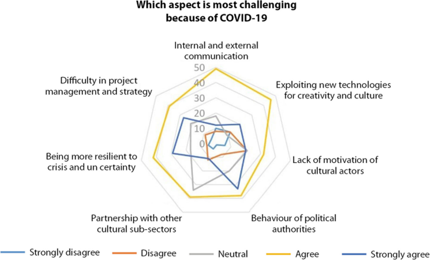 Even before Covid-19, administrative and operational tasks were already a concern among the respondents. The pandemic, however, added more challenges, including the need to learn new skills to exploit new technologies and partner with cultural sub-sectors.
