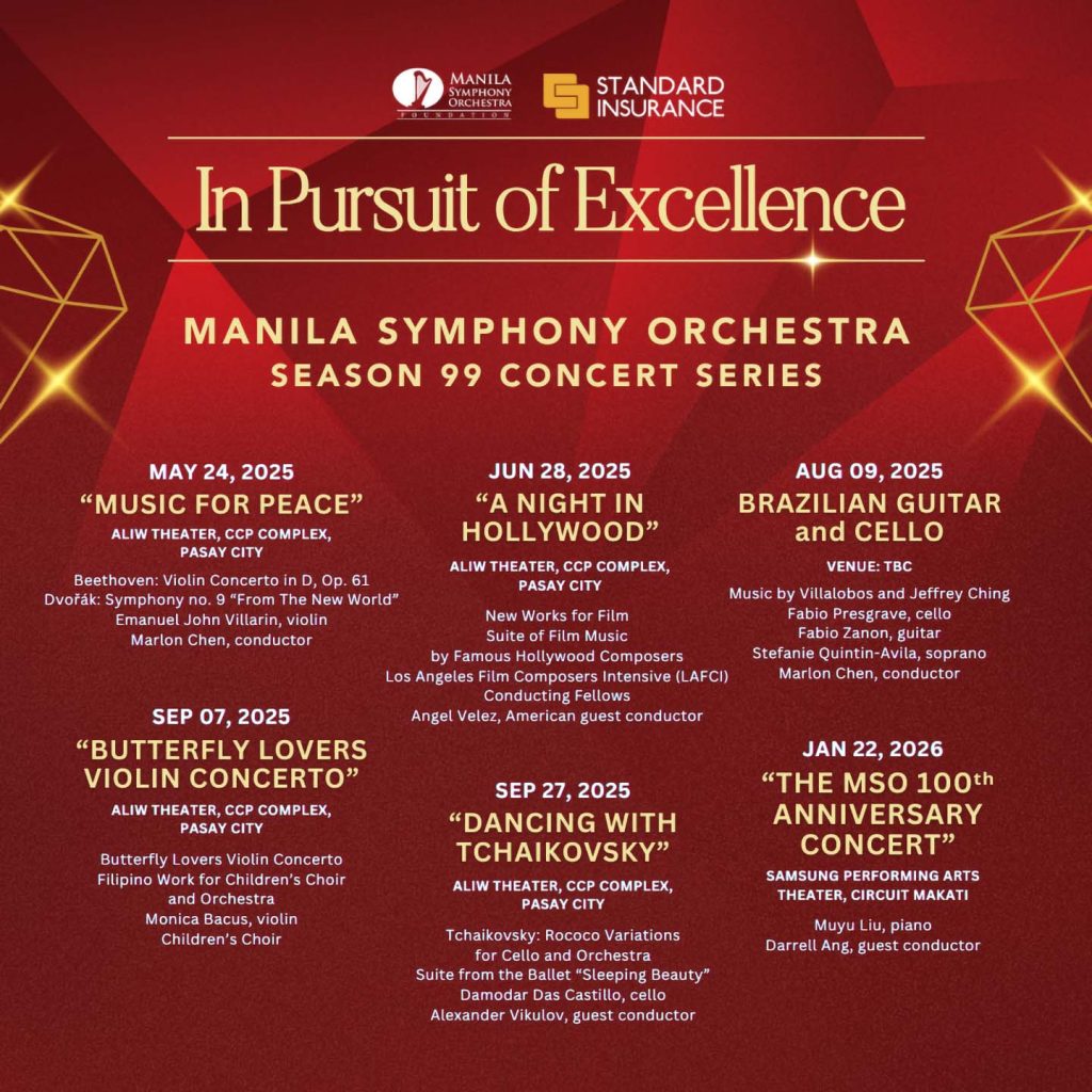 MANILA, PHILIPPINES – Marking nearly a century of musical excellence, the Manila Symphony Orchestra (MSO) and Standard Insurance proudly launch its 99th season IN PURSUIT OF EXCELLENCE: 2025-2026 MSO Concert Series.