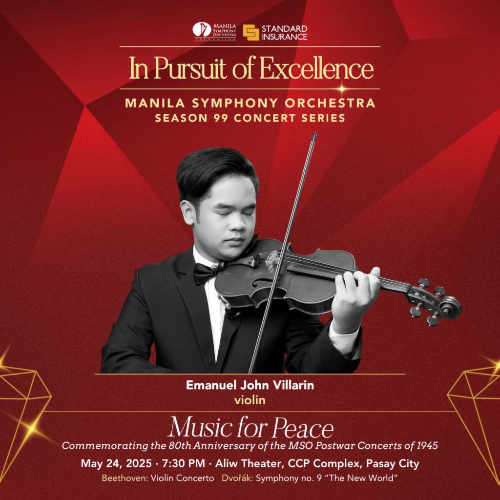 This year, the MSO commemorates the 80th anniversary of the series of over 150 post-liberation concerts organized between 1945 and 1946. Among the music performed during that period are Dvořák’s Symphony No. 9 “From The New World” and Beethoven’s Violin Concerto in D, Op. 61, which will be performed featuring Berlin-based violin soloist Emanuel John Villarin and conductor Marlon Chen. Through these monumental works, the MSO continues to celebrate its mission of using music as a force for peace, unity, and healing.