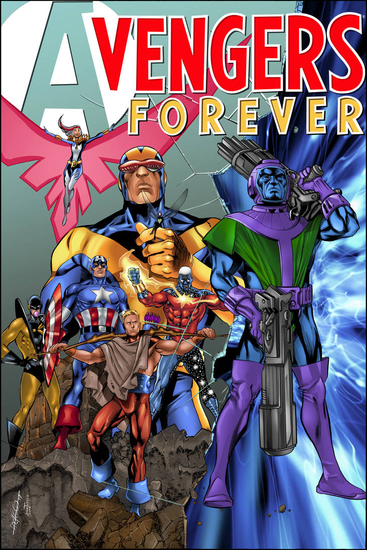 Story: A group of Avengers from past, present, and future are chosen to alter events in time and space to prevent mankind from a dark destiny. The team is composed of a disillusioned Captain America, a young Hawkeye, Wasp and Goliath from the present day, Yellow Jacket from the past, and future versions of Captain Marvel and Songbird trying to stop Kang, the time-travelling conqueror.