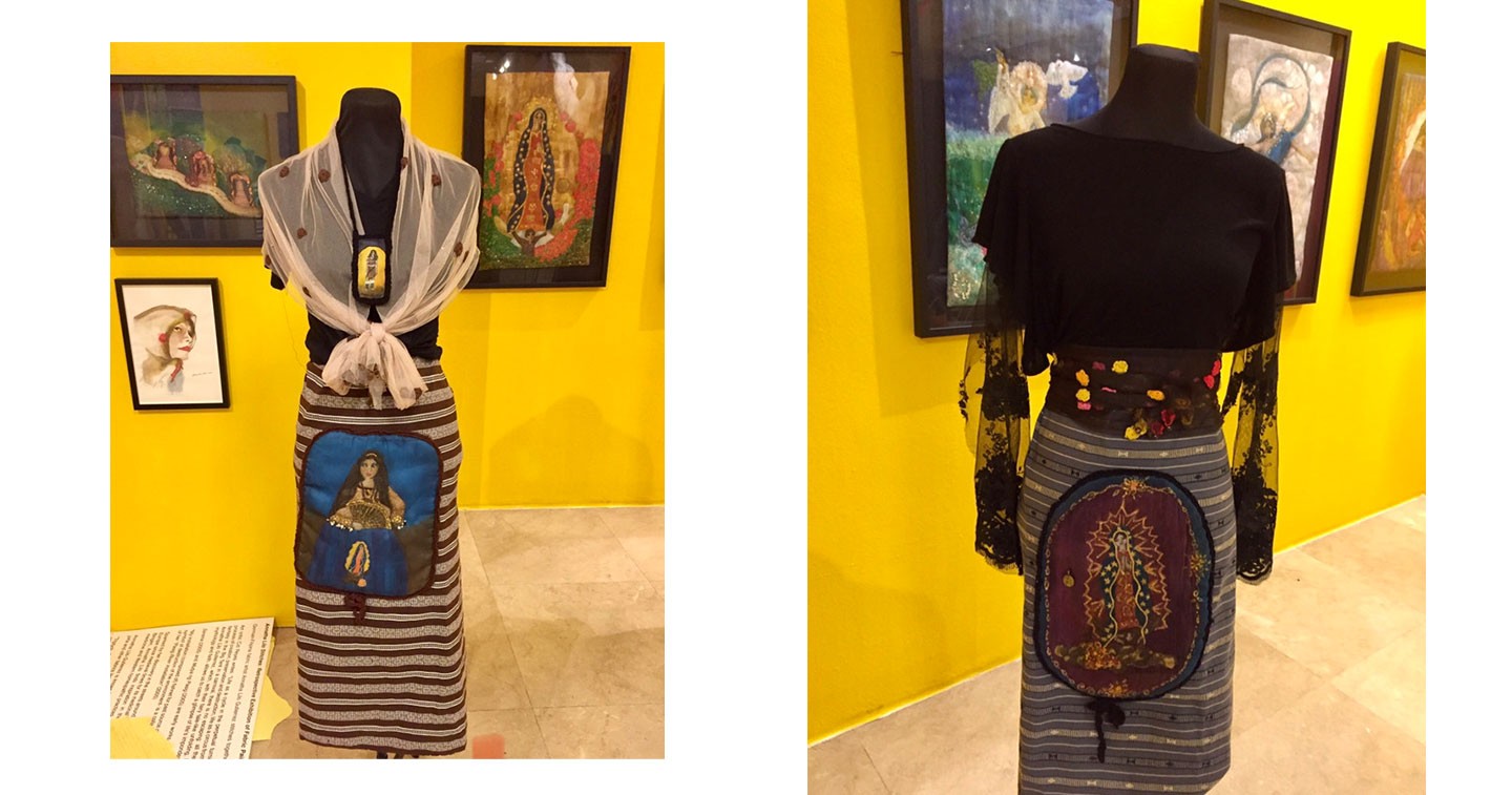Annatha Lilo says about the process: “It is a labor intensive and a manual process involving crochet, quilting and beading. I use crochet for the borders and for the sash in my tapis skirts. I use crochet because this is sturdier than say machine-made lace and for aesthetic reasons. Another labor of love is the beading where beads and semi-precious stones are hand-sewn on my artworks. Finally, quilting is involved to set the artwork evenly and firmly on the fabric.”