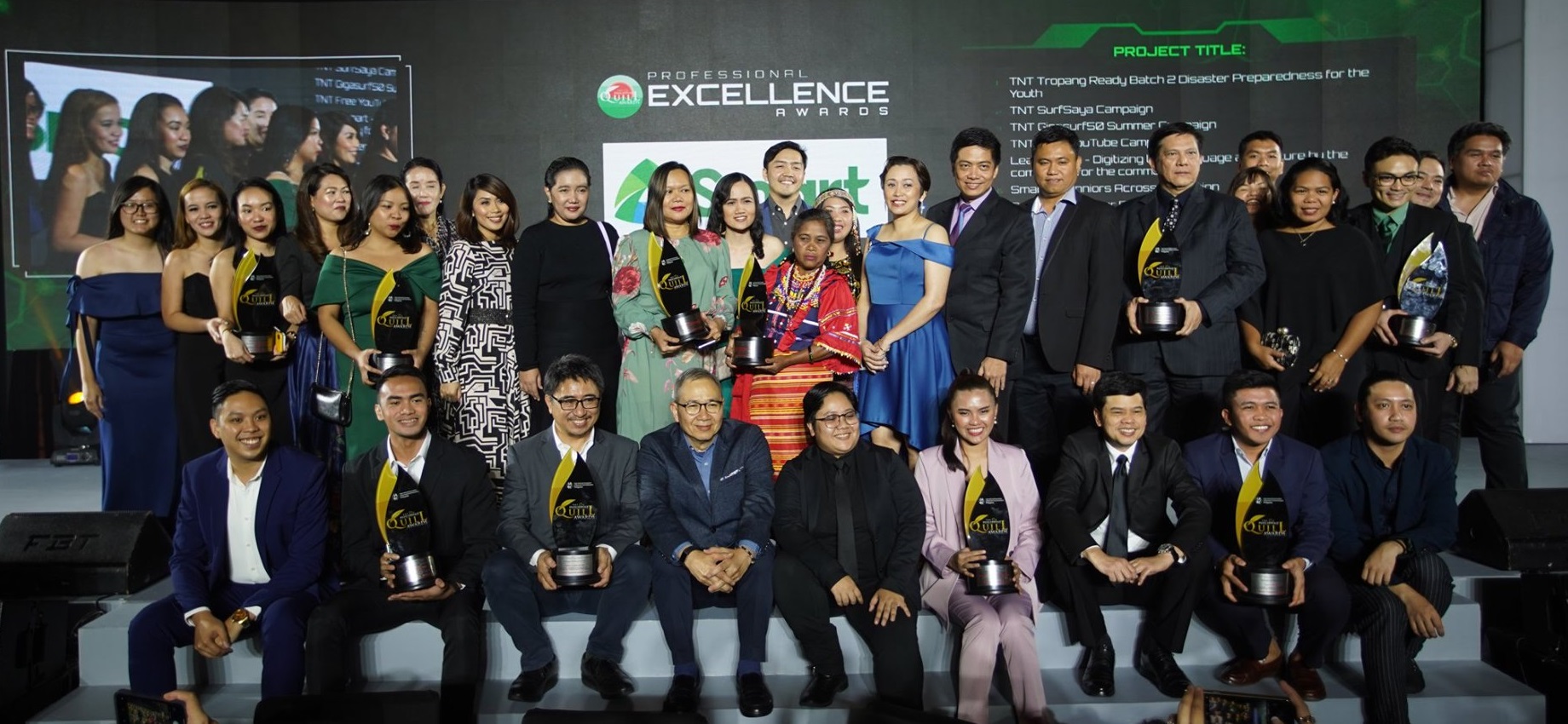 Brand campaigns for Smart LTE Nation, TNT SurfSaya, TNT GigaSurf50, and the Free YouTube Everyday projects of Smart and TNT each bagged Excellence Awards. Value brand Sun Cellular received an Award of Merit for their Para Nimo Cebu relaunch campaign, while TNT Tropa Trip Summer Music Fest won a Merit citation under the Special Events category.