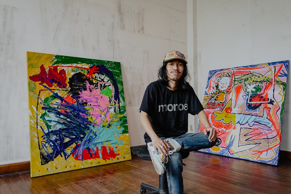 The rest of the works then hit you with a mix of bold colors and child-like expressive strokes, filling the room with an energy that captured the vibrant and chaotic city that is Manila, where Indonesian artist Iabadiaou Piko recently had his one-man exhibition called “Catharsis” to mark his month-long residency in the Philippines, in collaboration with 1335Mabini and Mono8 Gallery.