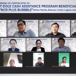 In today’s online awarding of certificates, 8,251 beneficiaries of the DOT-DOLE cash assistance program were recognized. NCR, 2,199; Bulacan, 901; Cavite, 924; Laguna, 2,490; and Rizal, 1,737, amounting to Php 41.2 million.