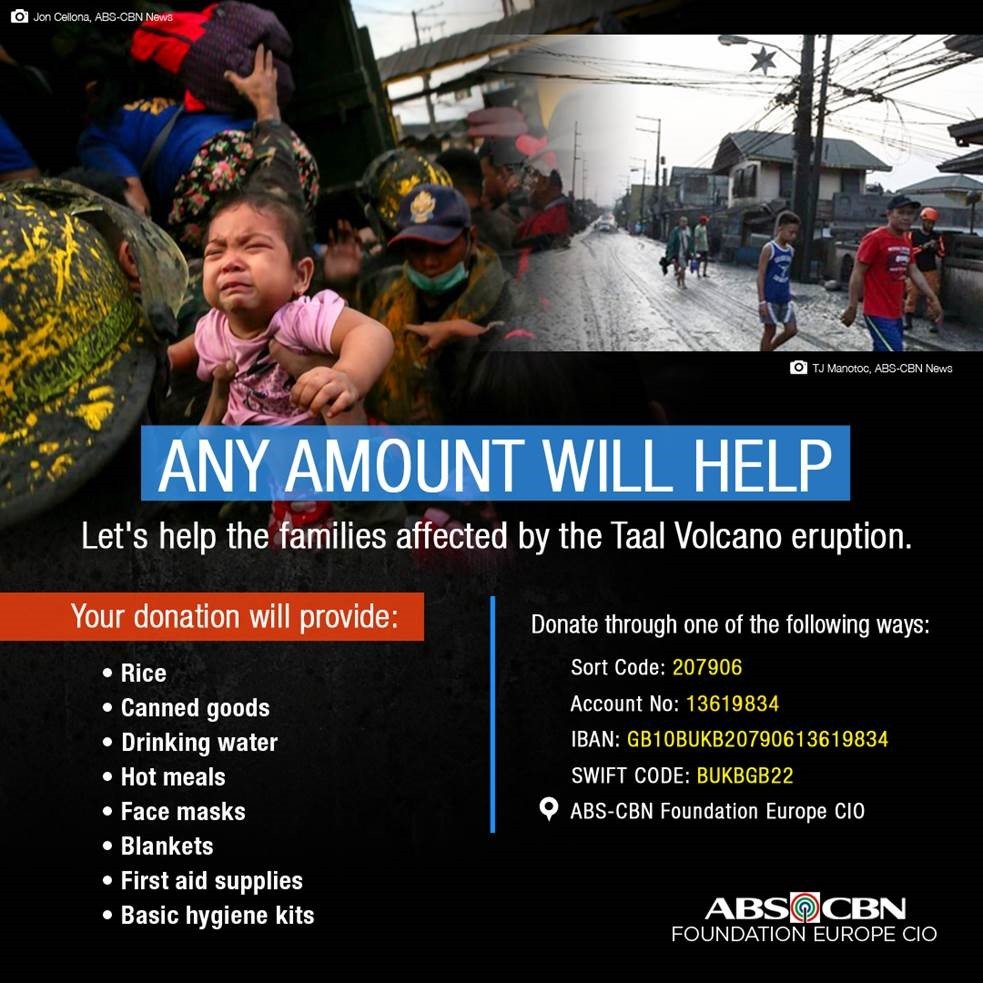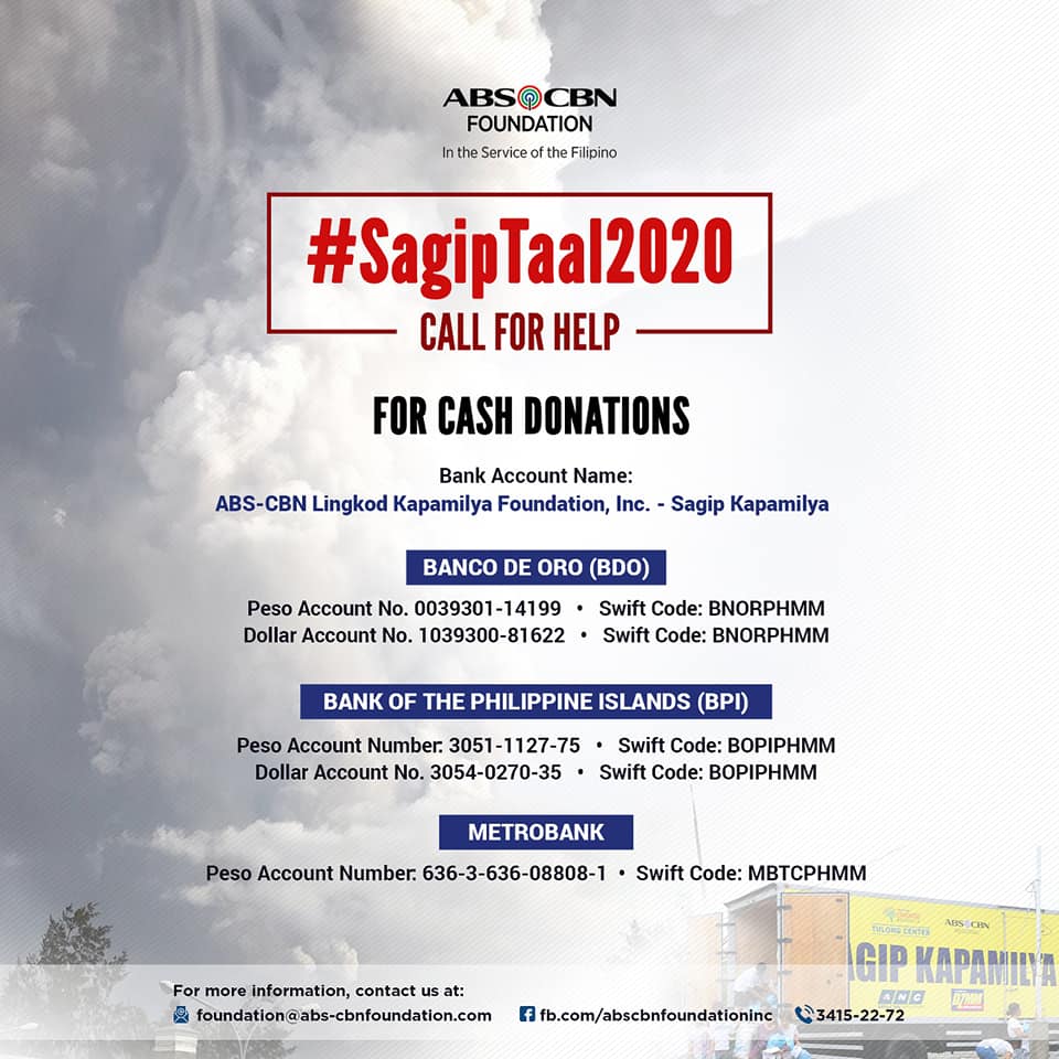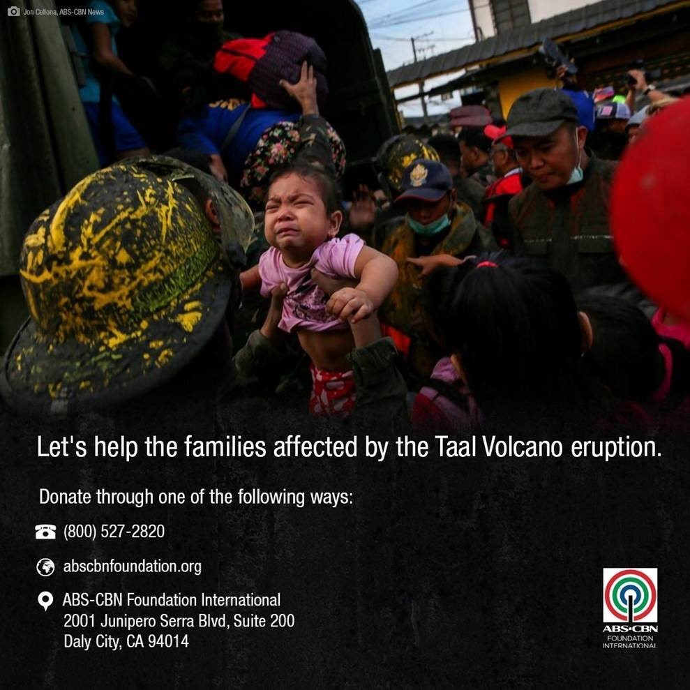 MANILA, PHILIPPINES – ABS-CBN, through its long-running, award-winning Sagip Kapamilya program, is appealing to millions of overseas Filipinos and global communities to help victims and evacuees of affected areas following the eruption of Taal Volcano in Batangas, Philippines.