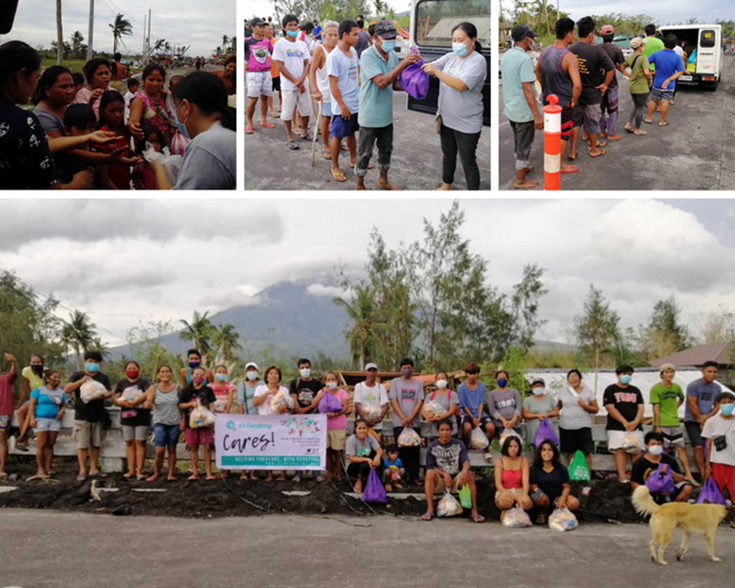 MANILA, PHILIPPINES – As the Philippines is currently battling the after-effects of the destructive typhoons Rolly and Ulysses, Airfunding, a global donation-based crowdfunding platform recently launched its company-sponsored charity drive named Airfunding Cares, to help people affected by natural calamities and the global pandemic crisis. A recent relief effort was sent to Cagsawa, Daraga, Albay in the Philippines to help families hard hit by typhoon Rolly. Airfunding sent “Care Packs” to more than 100 families and distributed bread among young children in the streets leading to the area.