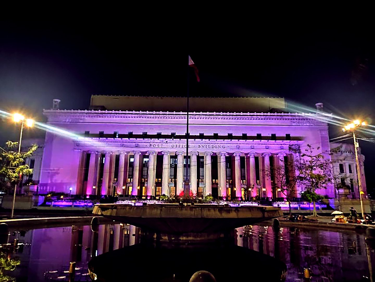 The facade of the historic Manila Central Post Office Building was illuminated with Purple. It is the color of International Women’s Day which signifies justice and equality.