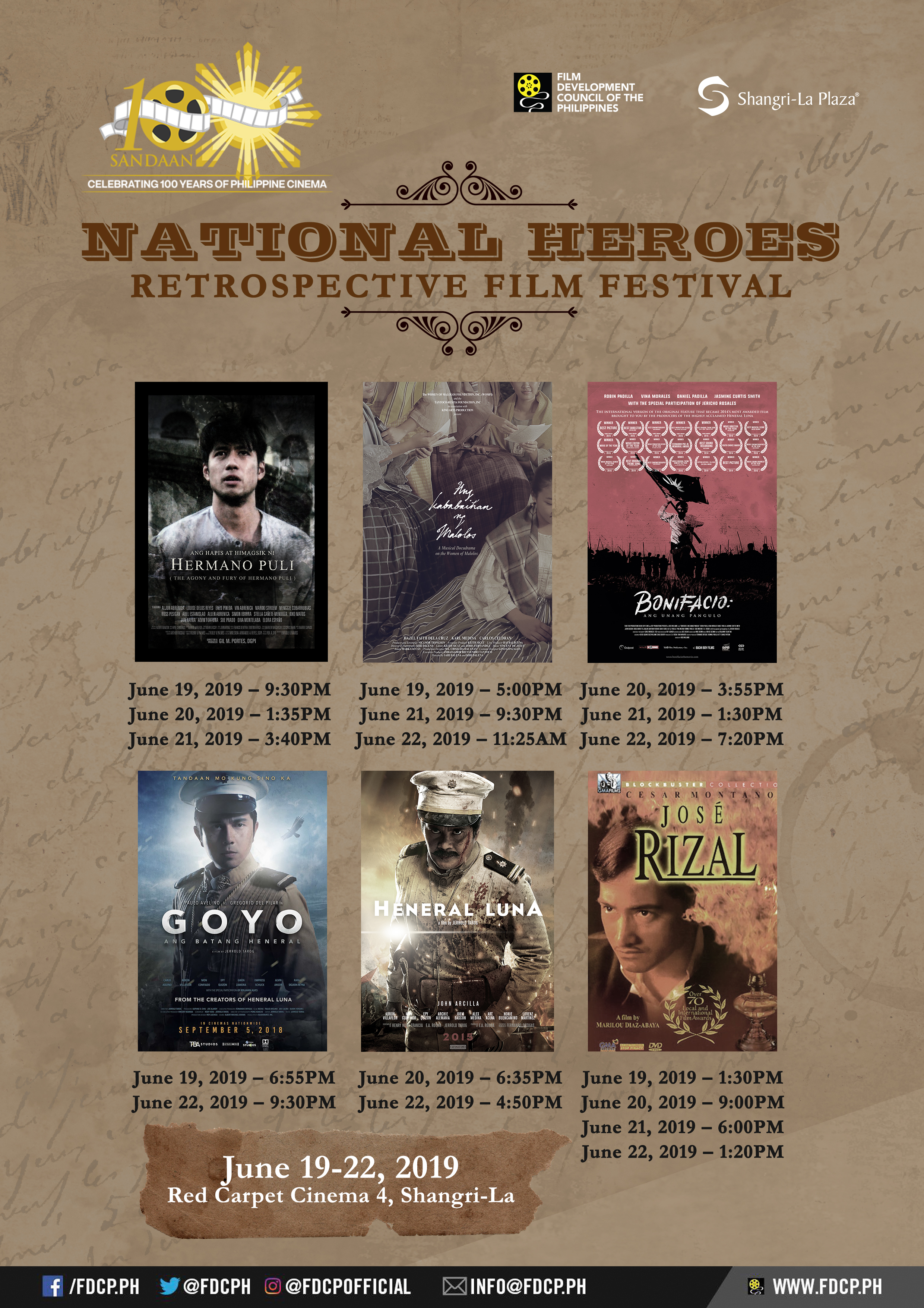 In celebration of Sandaan: the One Hundred Years of Philippine Cinema, six (6) films that champion different Philippine national heroes and their contributions to the country will be screened during the Festival. These are “Ang Kababaihan ng Malolos” directed by Sari Dalena and Kiri Dalena, “Ang Hapis at Himagsik ni Hermano Puli” directed by Gil Portes, “Bonifacio: Ang Unang Pangulo” directed by Enzo Williams, “Jose Rizal” directed by Marilou Diaz-Abaya, and “Goyo: Ang Batang Heneral” and “Heneral Luna” directed by Jerrold Tarog.