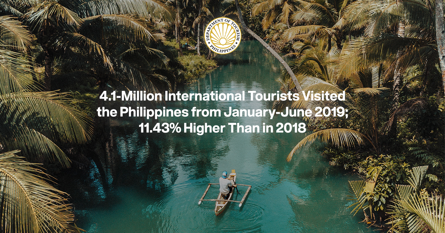 For the first half of 2019, a total of 4,133,050 international tourists visited the Philippines, marking a 11.43% percent increase from last year’s figures, according to the Department of Tourism (DOT).