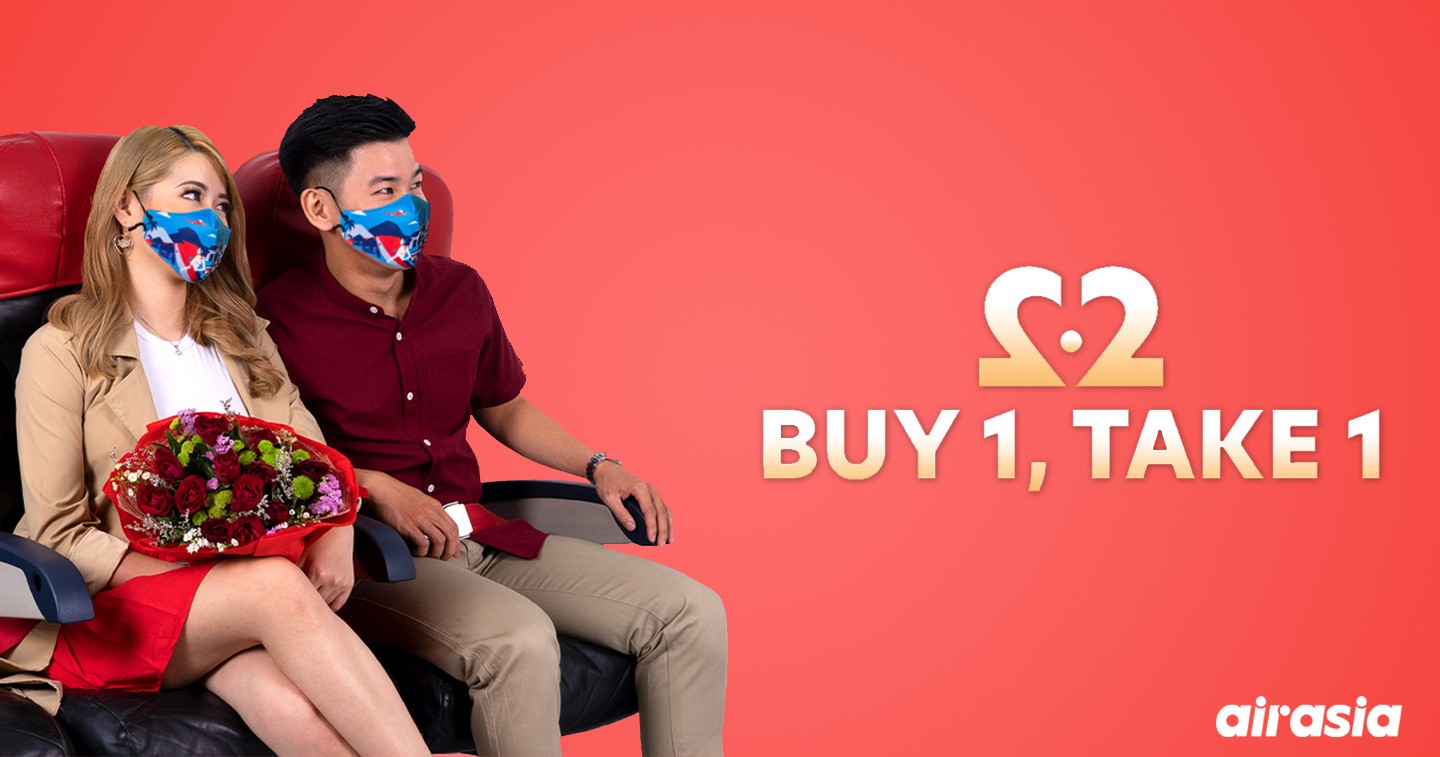 Customers can now enjoy the BUY 1, TAKE 1 promo from 1-7 February 2021 through airasia.com or airasia mobile and celebrate love anytime between February 2021 and 26 March 2022.