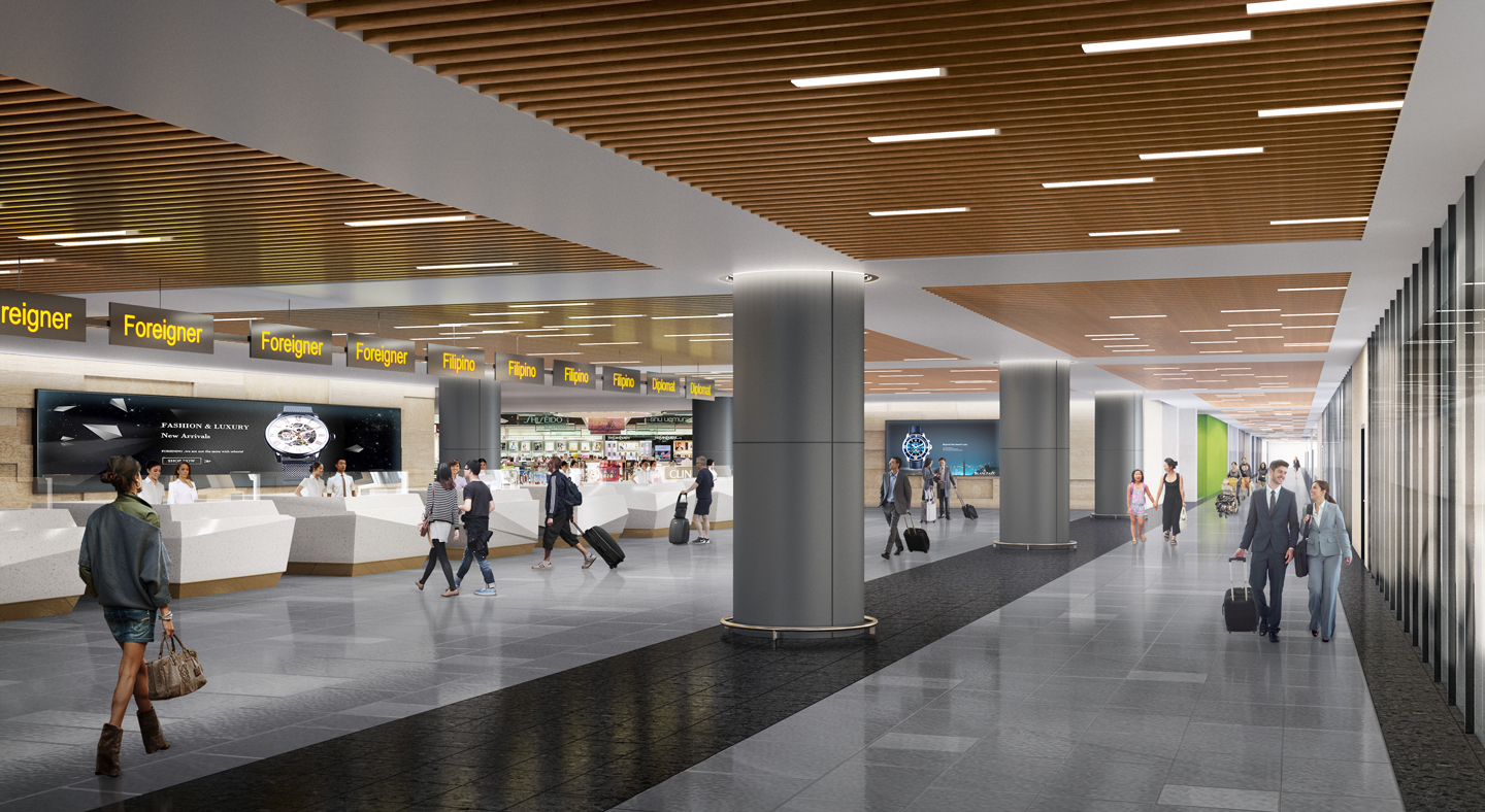 Passengers are greeted with a refreshing air of grays and creams at the Arrival Corridor leading up to Immigration. At the Baggage Reclaim Area, passengers are treated with a ceiling design that mimics the jagged stone walling of majestic caves found in Central Luzon.