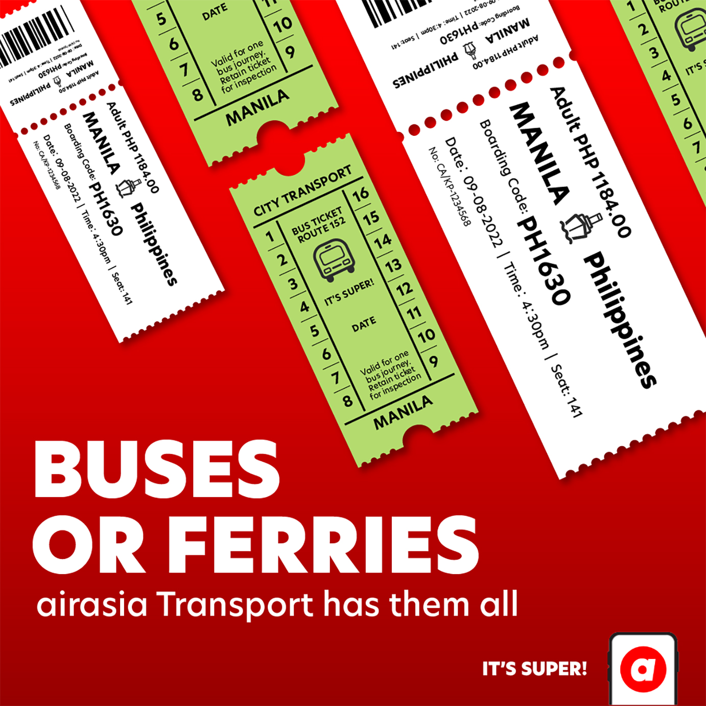 MANILA, PHILIPPINES — Travellers can now avoid long lines and save time from getting their bus or ferry tickets as airasia launches its latest Super App offering: airasia transport. This allows users to book tickets for buses, trains, and ferries seamlessly right on the airasia Super App.