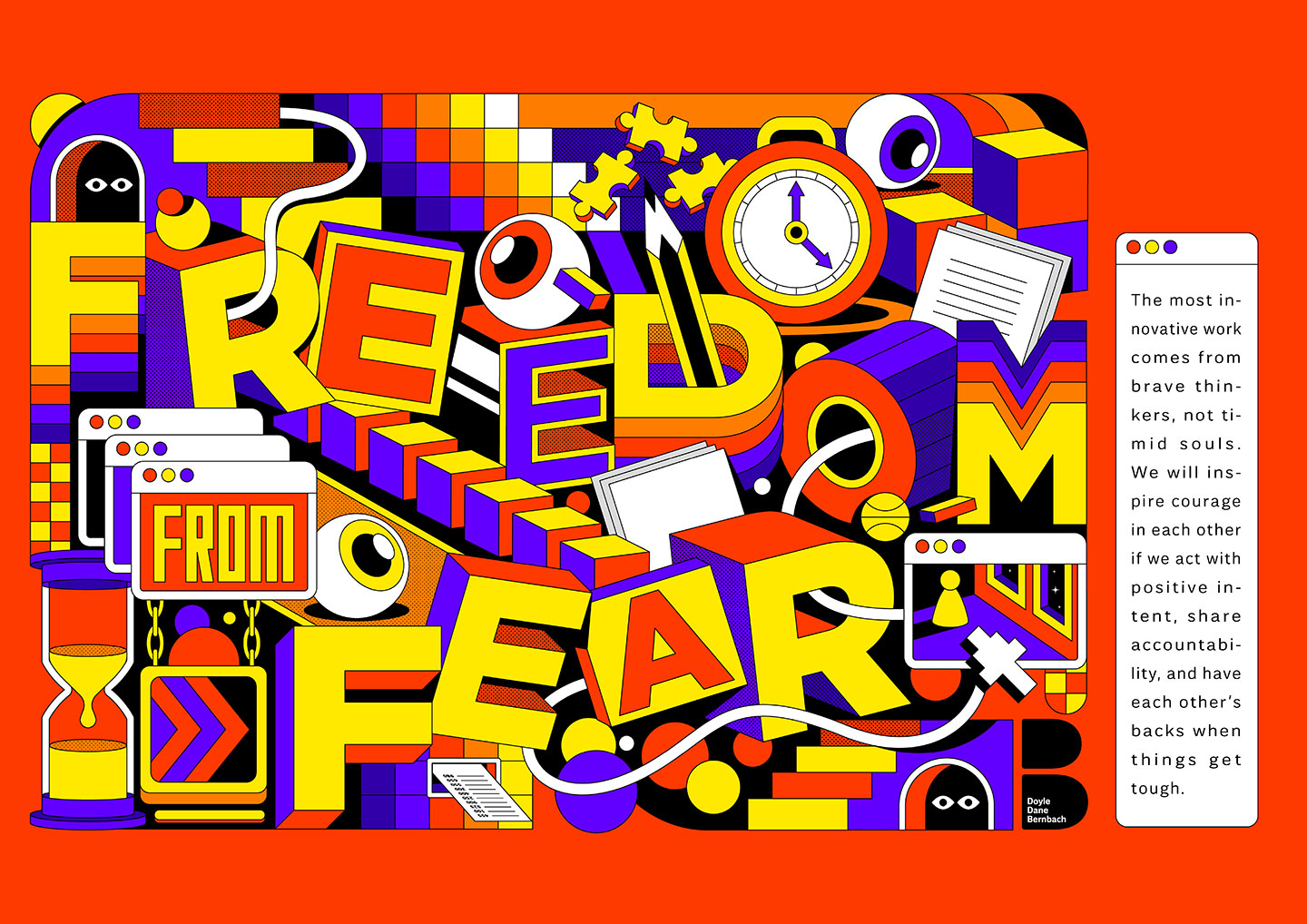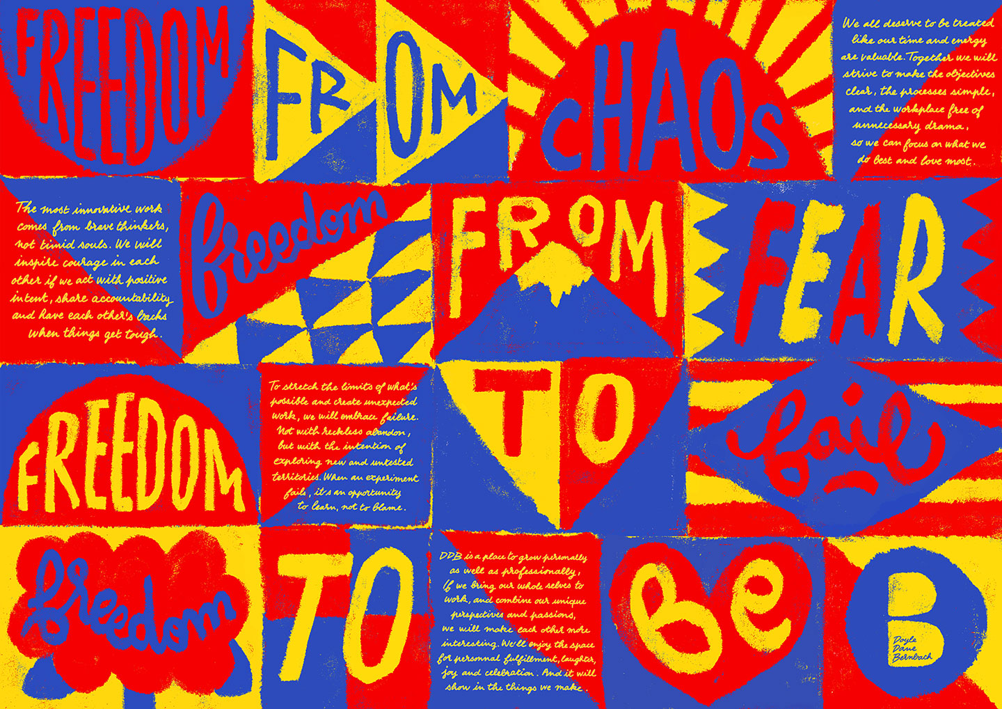 NEW YORK, USA — In 1987, DDB Chairman Emeritus Keith Reinhard composed the Four Freedoms to strengthen DDB’s creative culture. Since their inception, the Four Freedoms; Freedom from Fear, Freedom to Fail, Freedom from Chaos, and Freedom to Be; have been a foundational part of DDB values and a differentiator of the network’s culture for decades. As the world has evolved, DDB leadership felt it was important to update the Four Freedoms to reflect the shifts in culture and how exceptional creative work is produced. So in 2022, the network has reimagined the four principles to further strengthen culture and ensure staff at all levels across the network embody these values.
