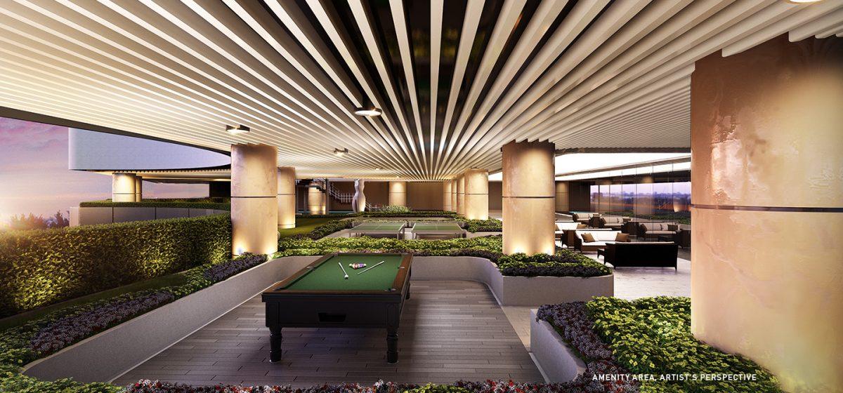Residents can find solace by the reflective pool, relax in seating alcoves, play a game or two of pool or table tennis, and clock in workout time in the sports and yoga terrace.