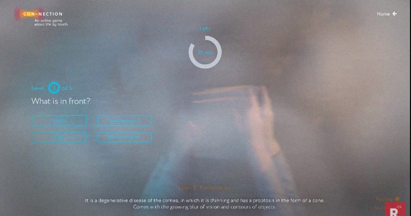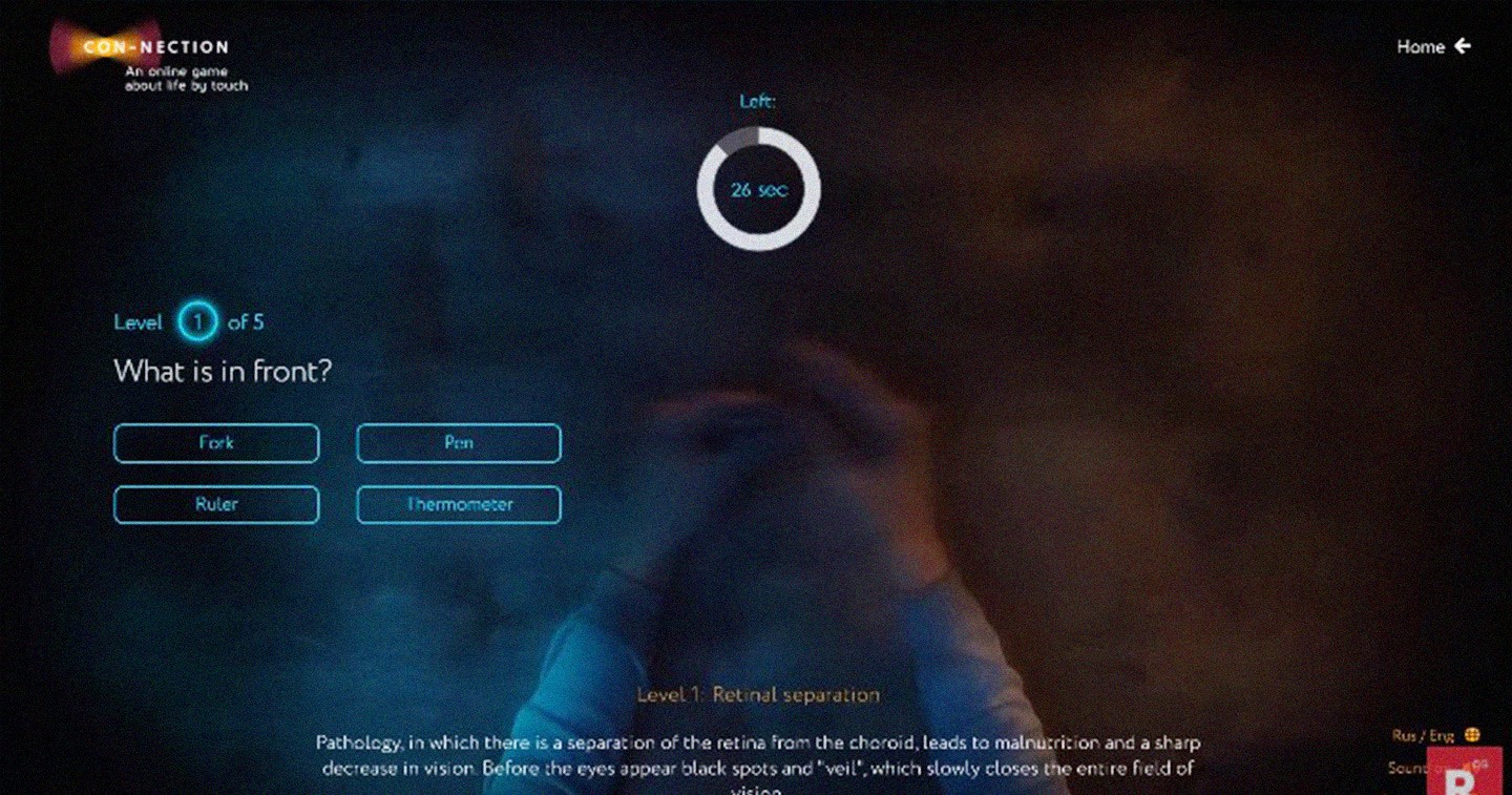 - In conclusion, users will be able to find out how they would feel in the world of a deaf-blind person, share a link to the game on social networks, and donate to the “Сonnection”.