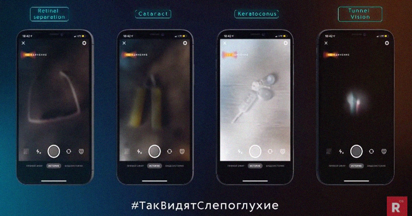 To explain to a wide audience how the deaf-blind people perceive the world, we ourselves needed to understand their perception model. Because of conducting a number of interviews with deaf-blind people and consulting with ophthalmologists, Connection found out that not all deaf-blind people have complete loss of vision. Many distinguish light, some of them see the contours, and some see the world through a “window” that has a diameter of a pencil. In addition, many deaf-blind people have a unique tactile perception of the world. So the concept of the first interactive game in Russia appeared in a way on behalf of a deaf-blind person.