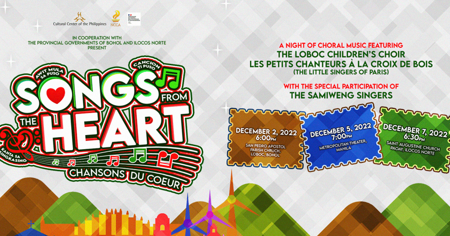 MANILA, PHILIPPINES — The Cultural Center of the Philippines (CCP), the National Commission for Culture and the Arts (NCCA), and the Embassy of France to the Philippines and Micronesia bring “Songs from the Heart,” a night of choral music, this December.