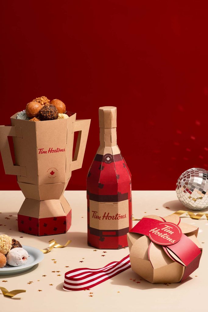 The campaign brings a fresh twist to Timbits with a series of origami-inspired boxes that fold into celebratory symbols—a medal, a champagne bottle, and a trophy. Each box is designed to make everyday moments feel a little more special.