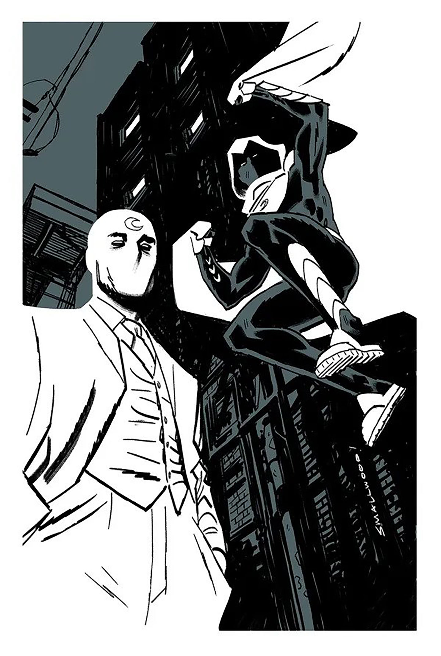 3. Mystical Aspect: The idea that crooks are a “superstitious lot” is rooted in The Dark Knight’s origin and he employs a lot of smoke and mirrors to make him appear mythical in nature. Moon Knight is rooted in mythology. In exchange for his resurrection, Marc Spector became a priest of the Egyptian god of vengeance Khonshu. Thanks to Khonshu, Moon Knight possesses enhanced strength, can see the future, and can even drain the life force of people.
