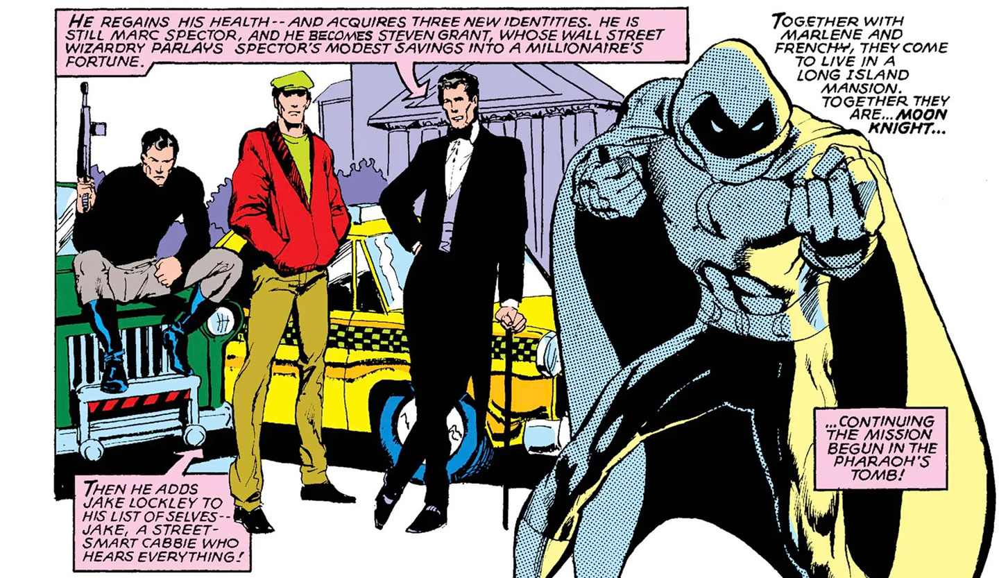 2. Personality Disorder: It has been debated that Bruce Wayne debonair billionaire is the façade while Batman is Wayne’s real personality. While Wayne has largely been able to distinguish his identities, MK is a total head case, having three dominant personalities – Marc Spector the mercenary (the original persona), Steven Grant the billionaire playboy, and Jake Lockley the taxi driver. Many MK stories center around his identity crisis. There was even a story where his personalities consisted of Spider-Man, Wolverine, and Captain America!