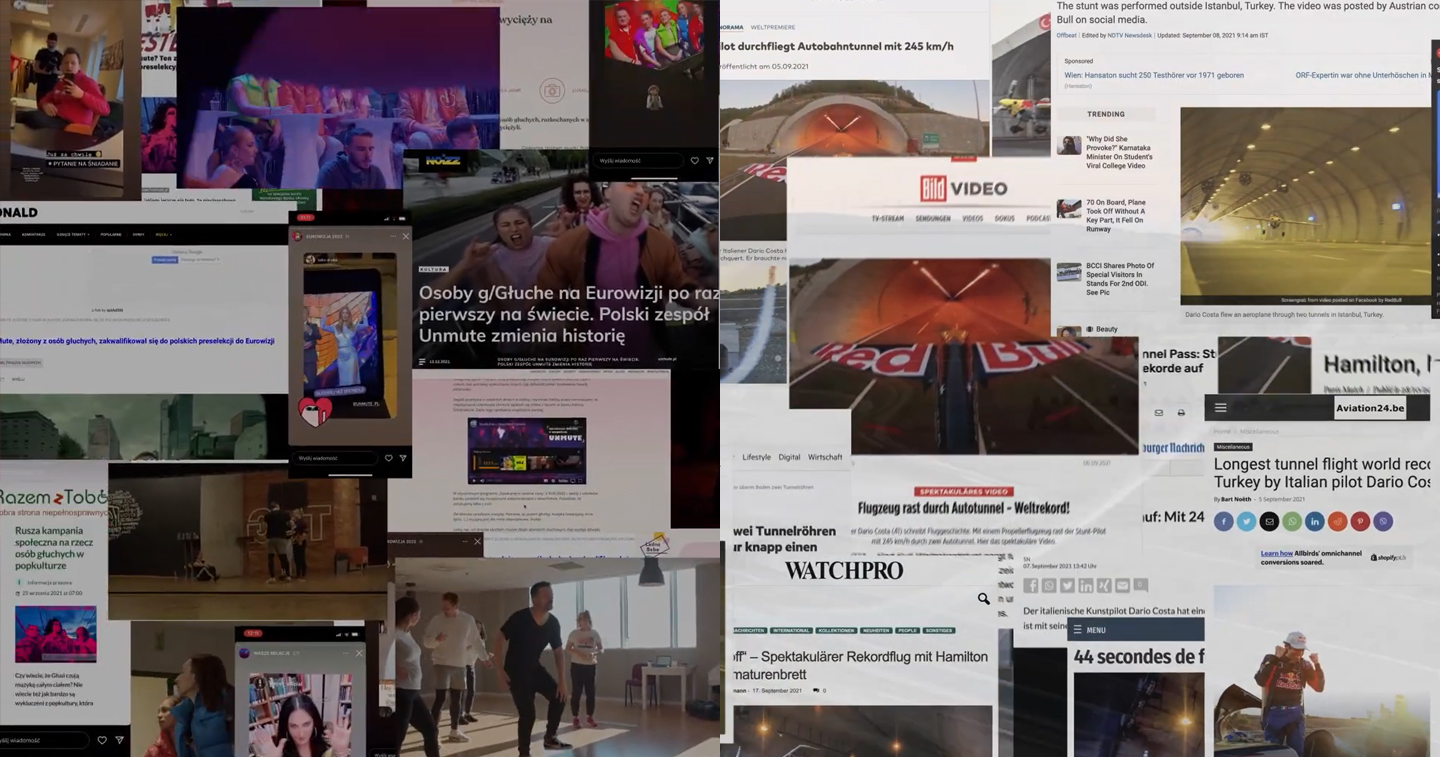 “The Tunnel Pass Project” was a daring stunt featuring world-famous Red Bull Athlete and aerobatic pilot Dario Costa defying all odds to become the first person ever to fly a plane through a tunnel, set five world records in the process, and generating 1.7 billion euros in earned media.