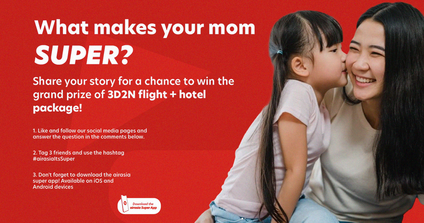 Ray Berja, Managing Director of airasia Super App Philippines says: “Mothers play a very important role in our lives. Every mom is super in their own way. They have made countless sacrifices and efforts that have helped us become who we are today. As a way of extending our gratitude, we want to reward our SUPER moms with an unforgettable time-off from their daily grind.”
