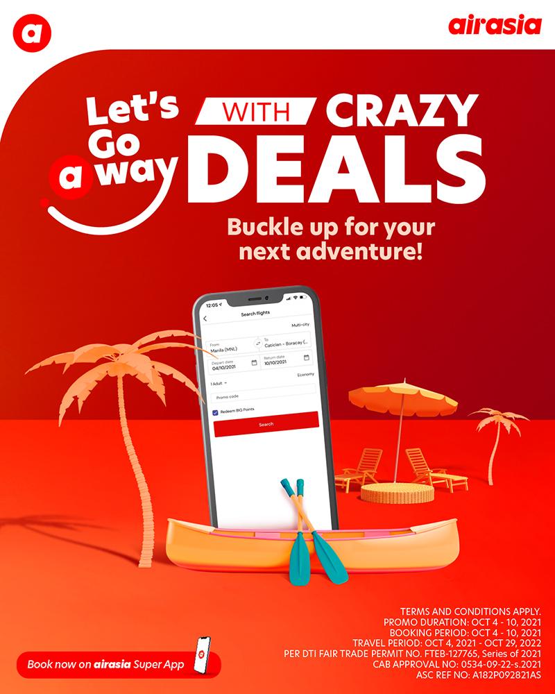 Guests can also enjoy up to 60% off on hotel bookings in AirAsia partner hotels. They may also opt to avail SNAP (flight + hotel) combos from as low as P2,435 per guest for a round trip ticket and 3 days 2 nights stay in Boracay, Bohol, Cebu and other leisure destinations. On top of these, a 20% discount will also be given to guests who will pre-book their baggage and seats during the promo period. Travel period meanwhile is from October 4, 2021 to October 29, 2022.