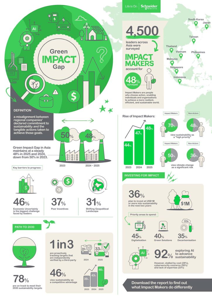 Now in its third year, Schneider Electric’s Green Impact Gap survey with Milieu Insight captures insights from 4,500 executives across nine Asian markets on how businesses are prioritizing and investing in sustainability.