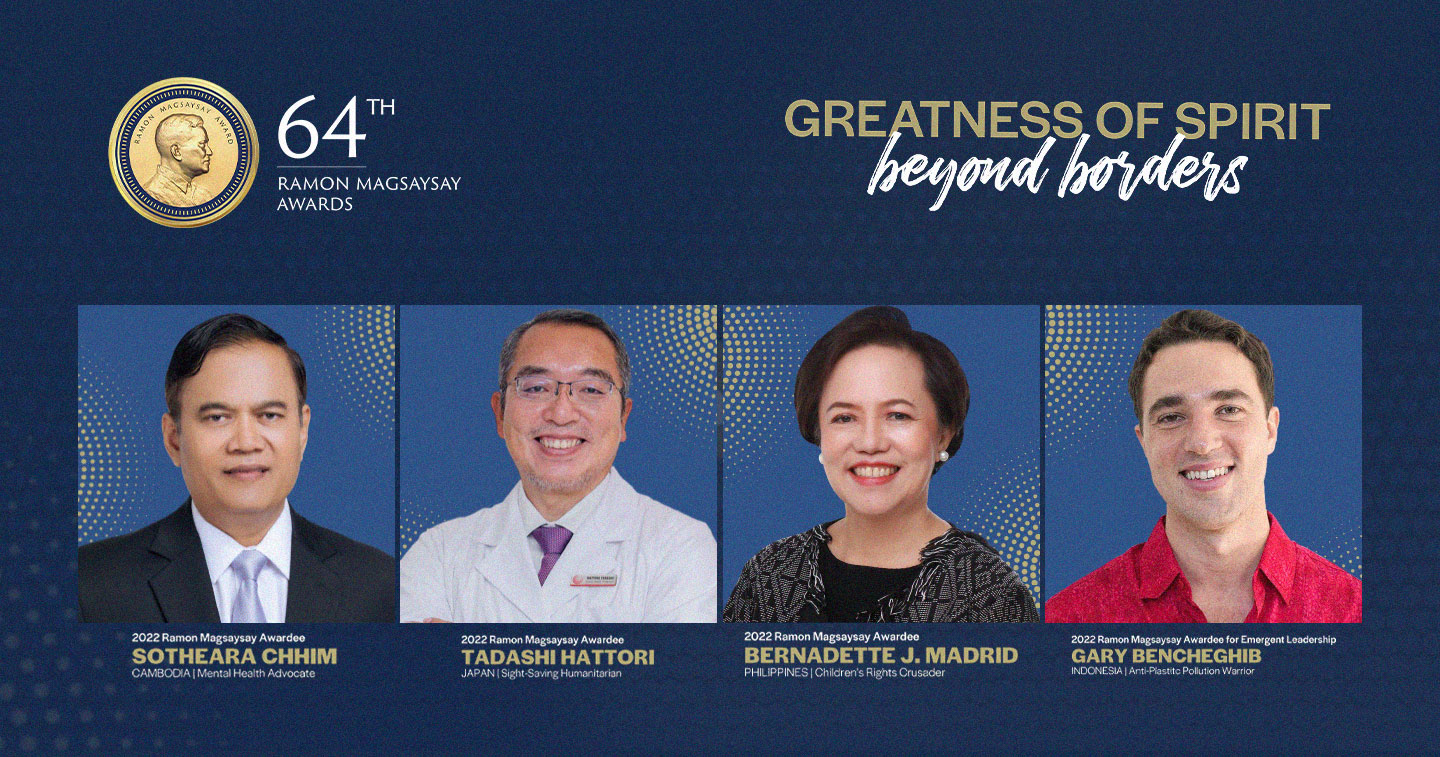 “The extraordinary work of the 2022 Ramon Magsaysay Awardees is testament to the borderless and limitless possibilities of Greatness of Spirit. This year’s Magsaysay Laureates allow us Asians to be prouder of our identity and heritage,” said Ramon Magsaysay Award Foundation President Susan B. Afan,.