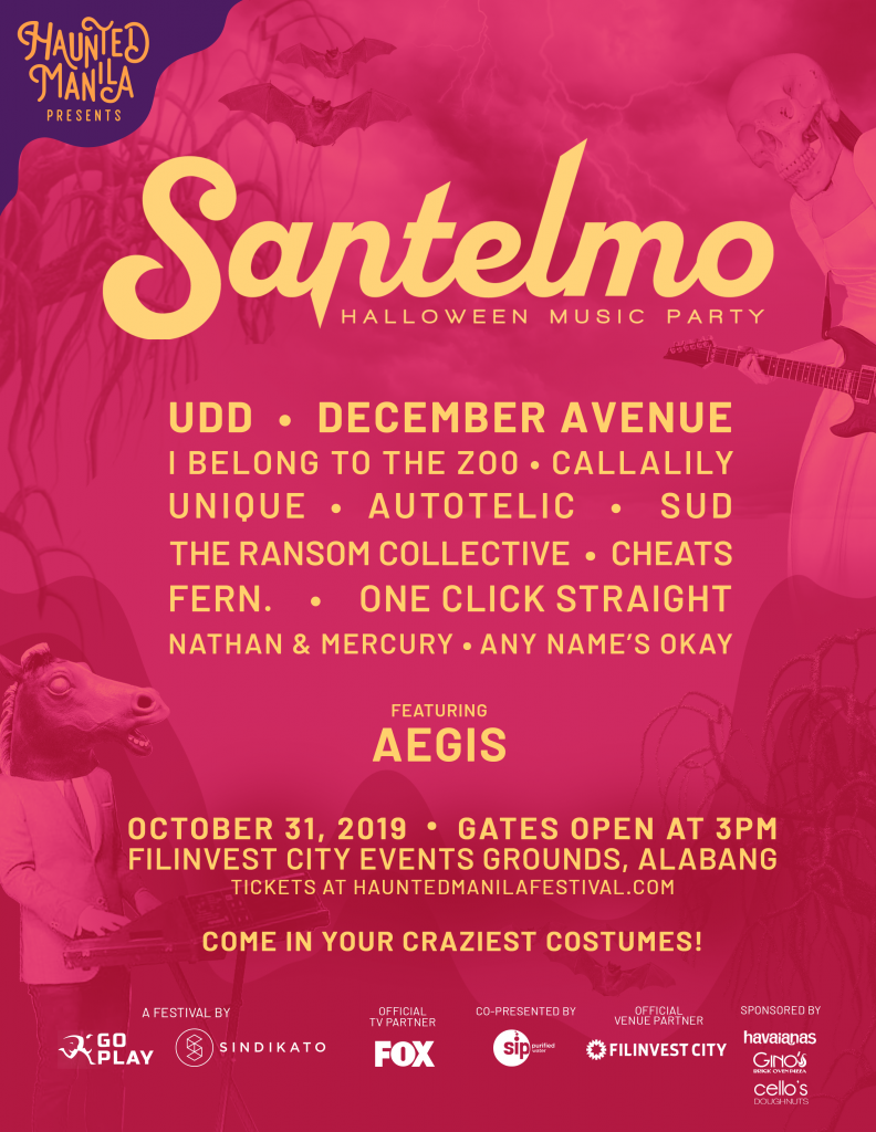 To end the festival Santelmo a Halloween Music Party featuring some of the country’s top OPM acts will continue to enchant party goers. Sing along with UDD, December Avenue, I Belong to the Zoo, Callalily, Unique, Autotelic, SUD, The Ransom Collective, Cheats, FERN., One Click Straight, Nathan & Mercury, Any Name’s Okay and get ready to strain those vocal cords and belt out some classic hits with Aegis!
