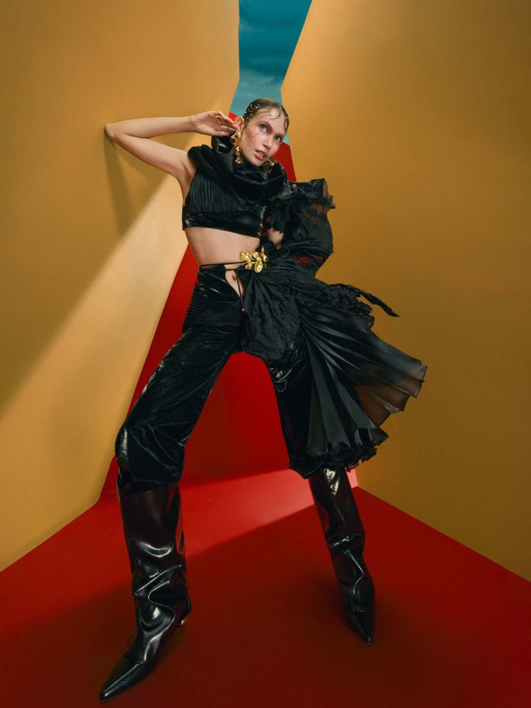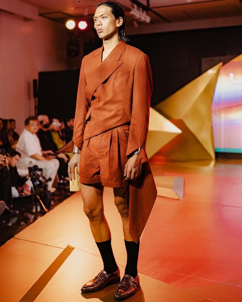 For Jerome Salaya Ang, “Never Square” meant embracing a state of transformation, which his collection perfectly captured. His runway designs flowed along the natural curves of the body, with sculpted organza and leather ensembles. His hero piece—a diamond-cut patterned cocoon top and pants—echoed the boldness of the new sweet treat.