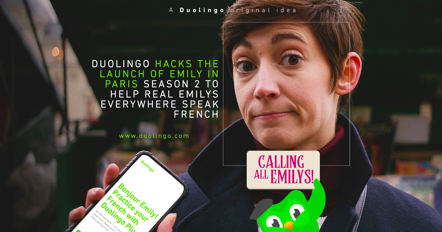 Campaign Spotlight: Duolingo invited every Emily in the world to improve their French for the launch of “Emily in Paris” season two