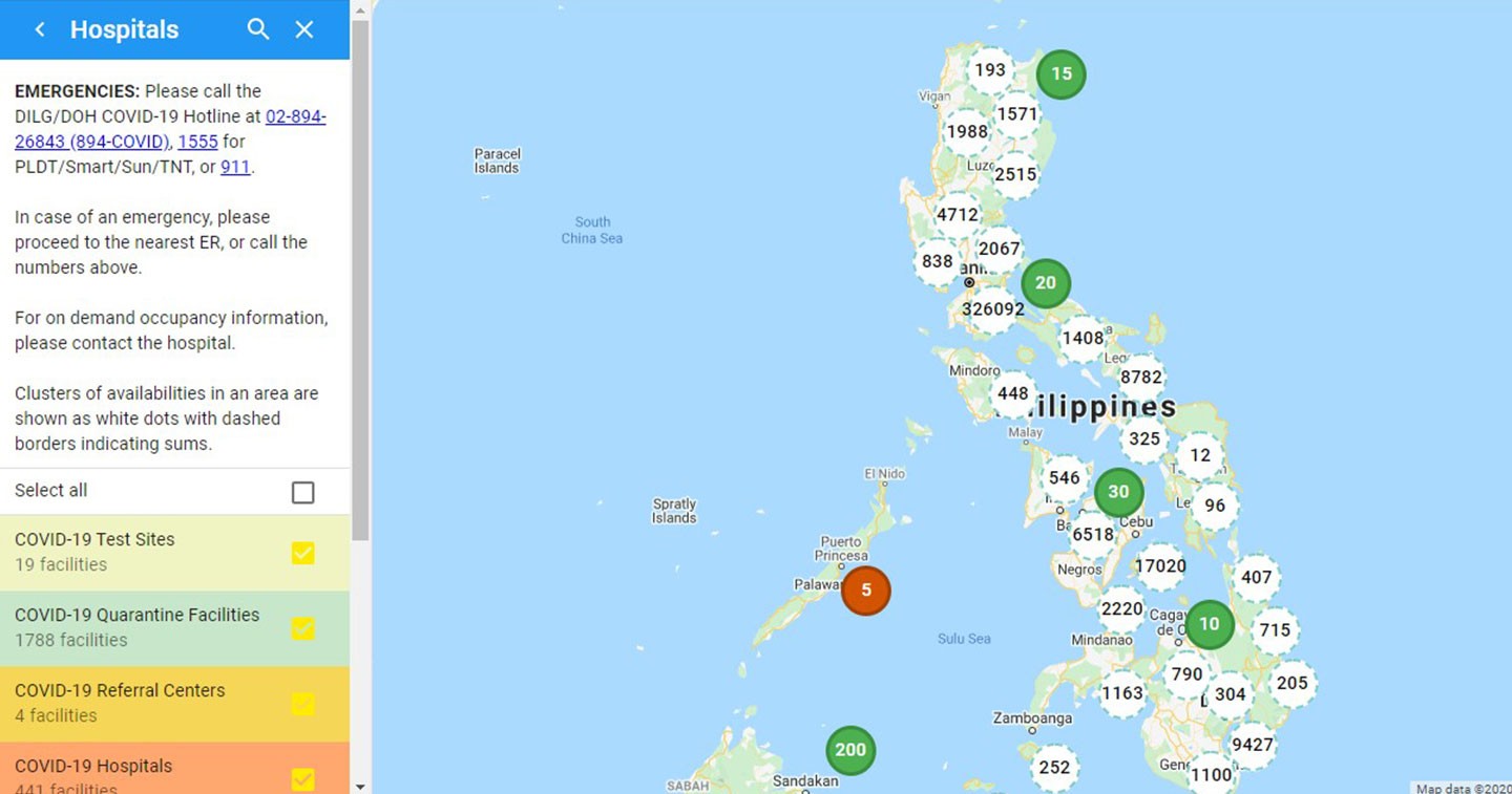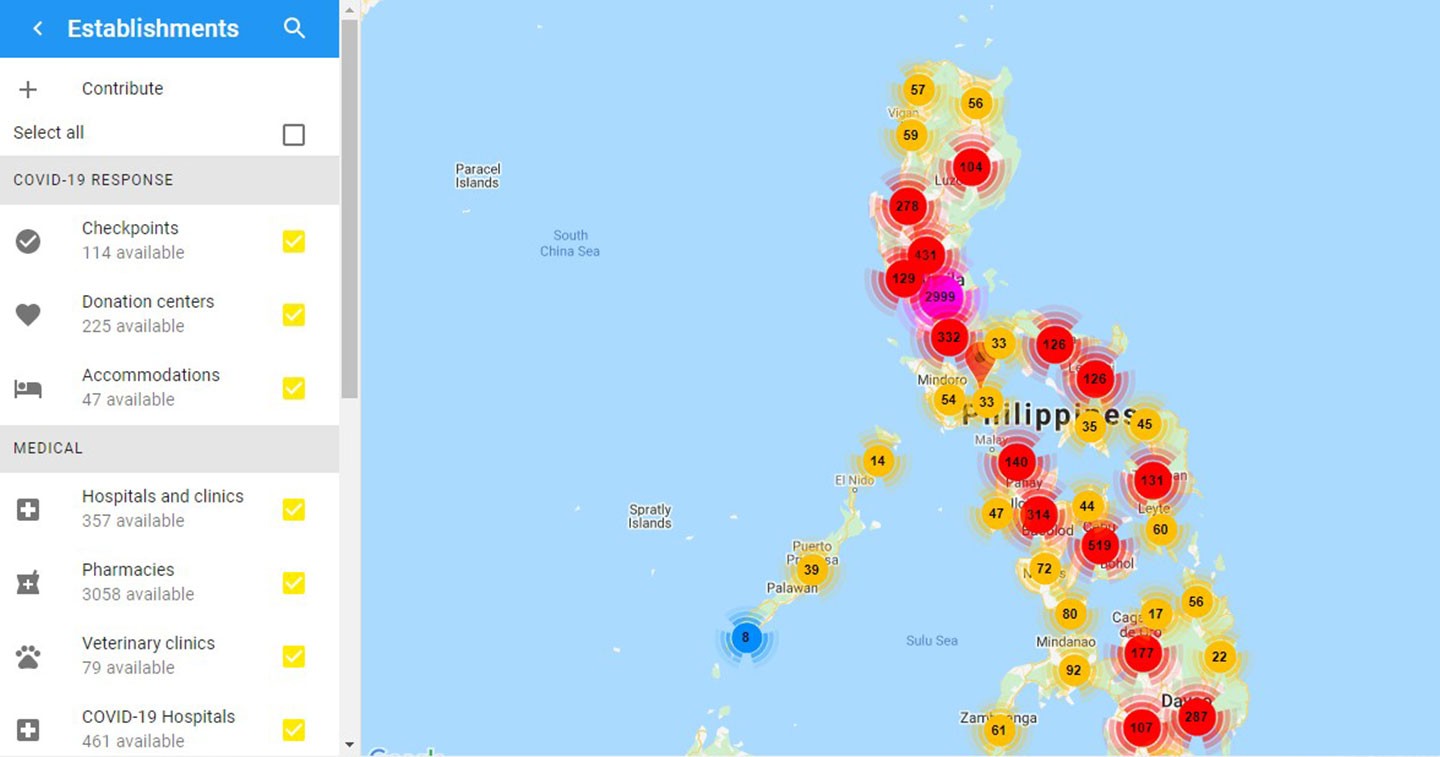 With regard to the coronavirus crisis, Dashboard Philippines updates its website to show more relevant information such as checkpoints, donation centers, open establishments, shuttles for essential workers, and hospitals that have available beds among others. The website uses Google Cloud and Google Maps platforms to present all this information in an intuitive and accessible manner.