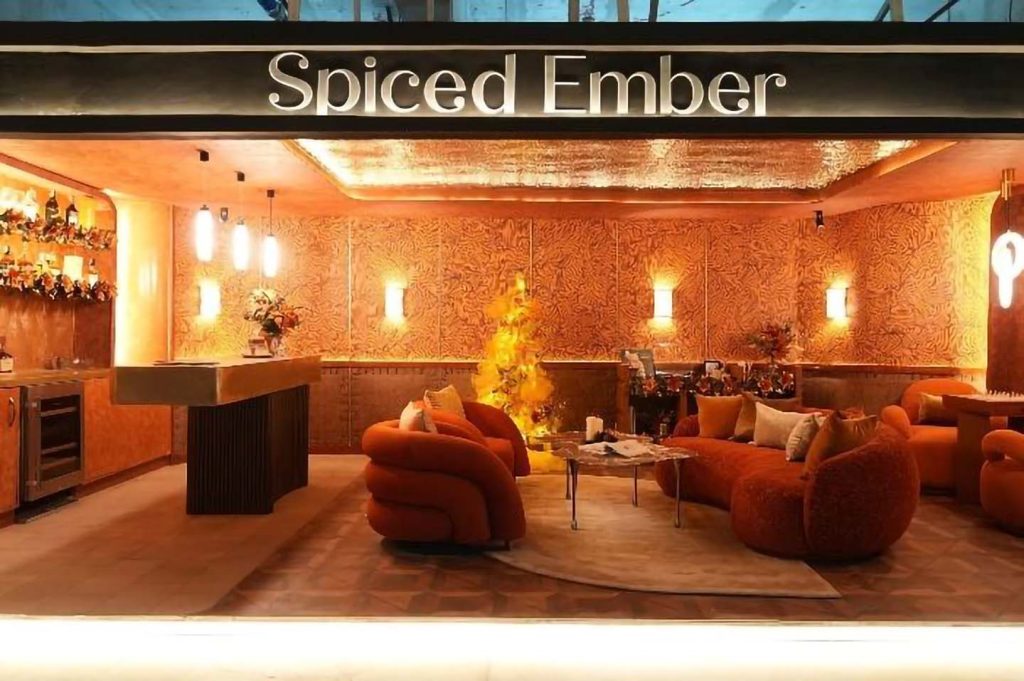 - Spiced Ember. A whisky lounge palette of russet, orange, and flame conveys warmth and refinement. Layered textures and sculptural accents offer a fresh take on holiday intimacy.