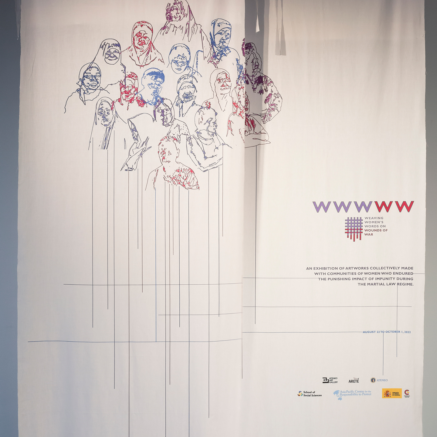 MANILA, PHILIPPINES — The Ateneo de Manila Political Science department, with support from the Ateneo Art Gallery, the Asia-Pacific Centre for the Responsibility to Protect, and the Spanish Agency for International Development Cooperation (AECID), has launched “Weaving Women’s Words on Wounds of War,” an exhibition of artworks co-created with communities of women who have experienced extraordinary atrocities, aggression and violent contestation during the Martial Law regime under President Ferdinand Marcos.