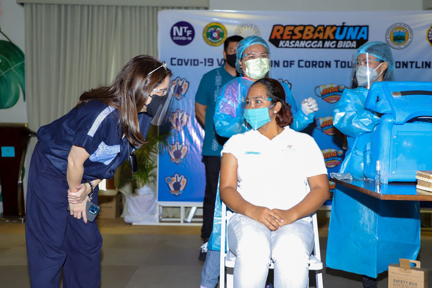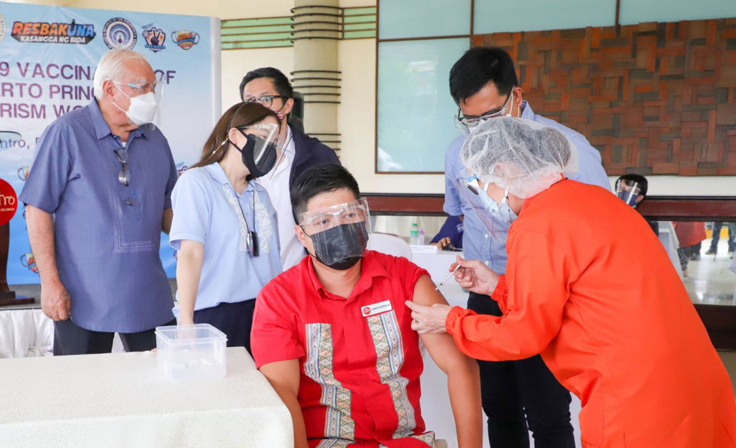 PALAWAN, PHILIPPINES — Tourism Secretary Berna Romulo-Puyat, along with Testing Czar and National Task Force Against COVID-19 Deputy Chief Implementer Secretary Vince Dizon, led the ceremonial vaccination of tourism workers in the island province of Palawan on August 3, Tuesday.